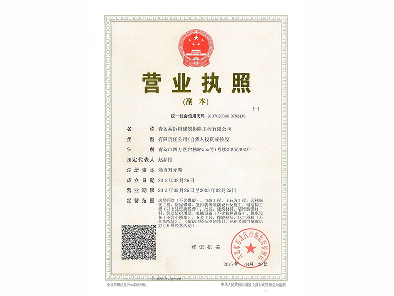 “安 全至上、優(yōu) 質(zhì)環(huán)保”是青島易拆得建筑拆除工程有限公司的企業(yè)宗旨,公司全體員工以“團(tuán)結(jié)、誠信、創(chuàng)新、高 效的企業(yè)精神愿為建筑行業(yè)的發(fā)展做出更大的貢獻(xiàn),真誠希望與社會(huì)各界及建筑同仁精誠合作、共享共贏。